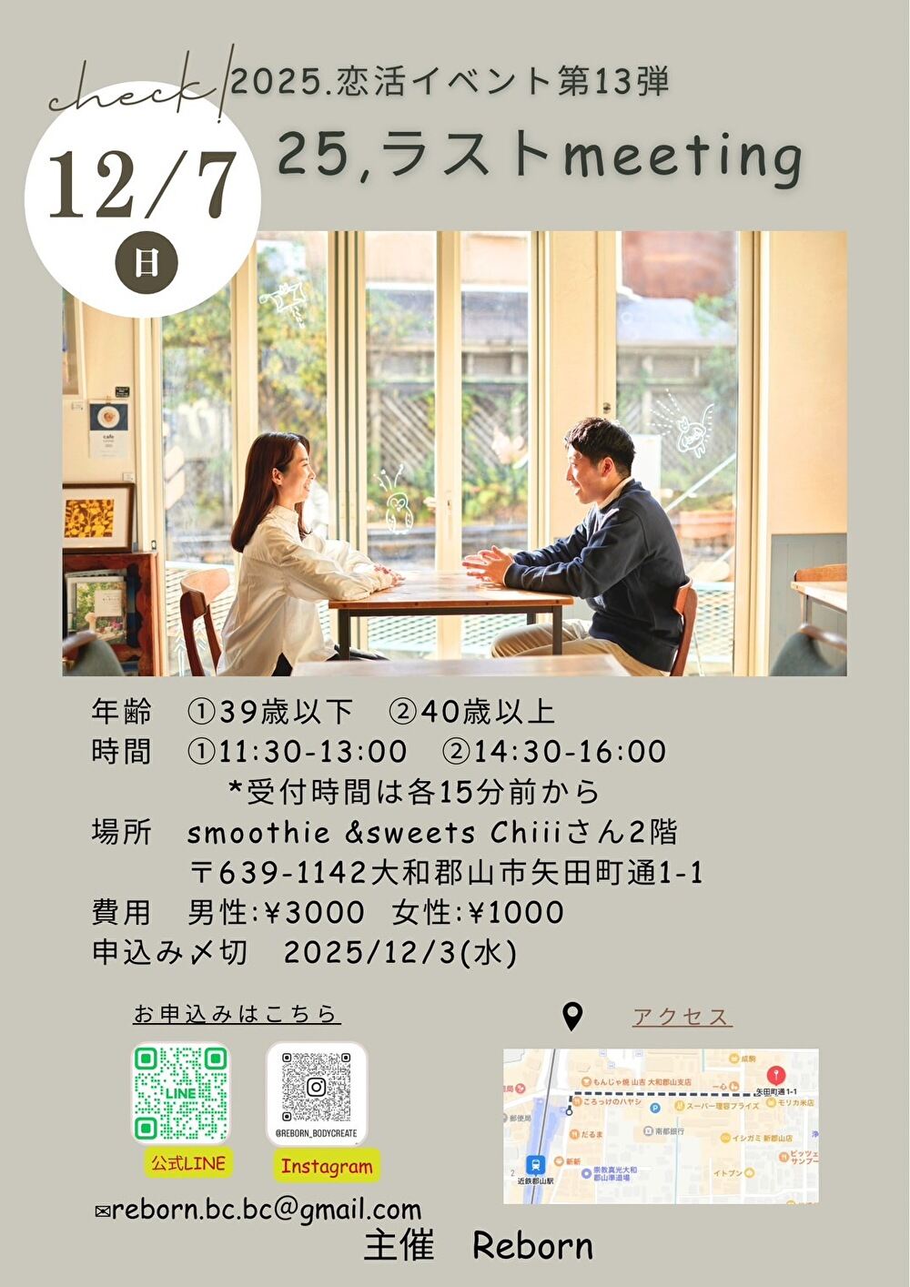 | 2025ǯ¡¡Îø³è¥¤¥Ù¥ó¥ÈÂè13ÃÆ ¡Ø25,¥é¥¹¥Èmeeting¡Ù º£Ç¯¤Î¤³¤È¤Ïº£Ç¯¤Î¤¦¤Á¤Ë¡ª ³«ºÅÆü»þ¡§12·î7Æü¡Ê Æü ¡Ë ¡11:30¡Á13:00 ¢14:30¡Á16:00 ¡Ê¼õÉդϳÆ15ʬÁ°¤«¤é¡Ë ¼çºÅ¼Ô¡§Reborn |